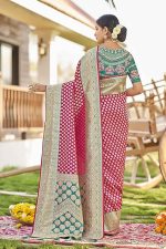 Women's Traditional Banarasi Silk Saree with Dulha Dulhan Design & Contrast Zari Pallu Comes with Unstitched Blouse ₹3,999.00 Original price was: ₹3,999.00.₹2,499.00Current price is: ₹2,499.00.